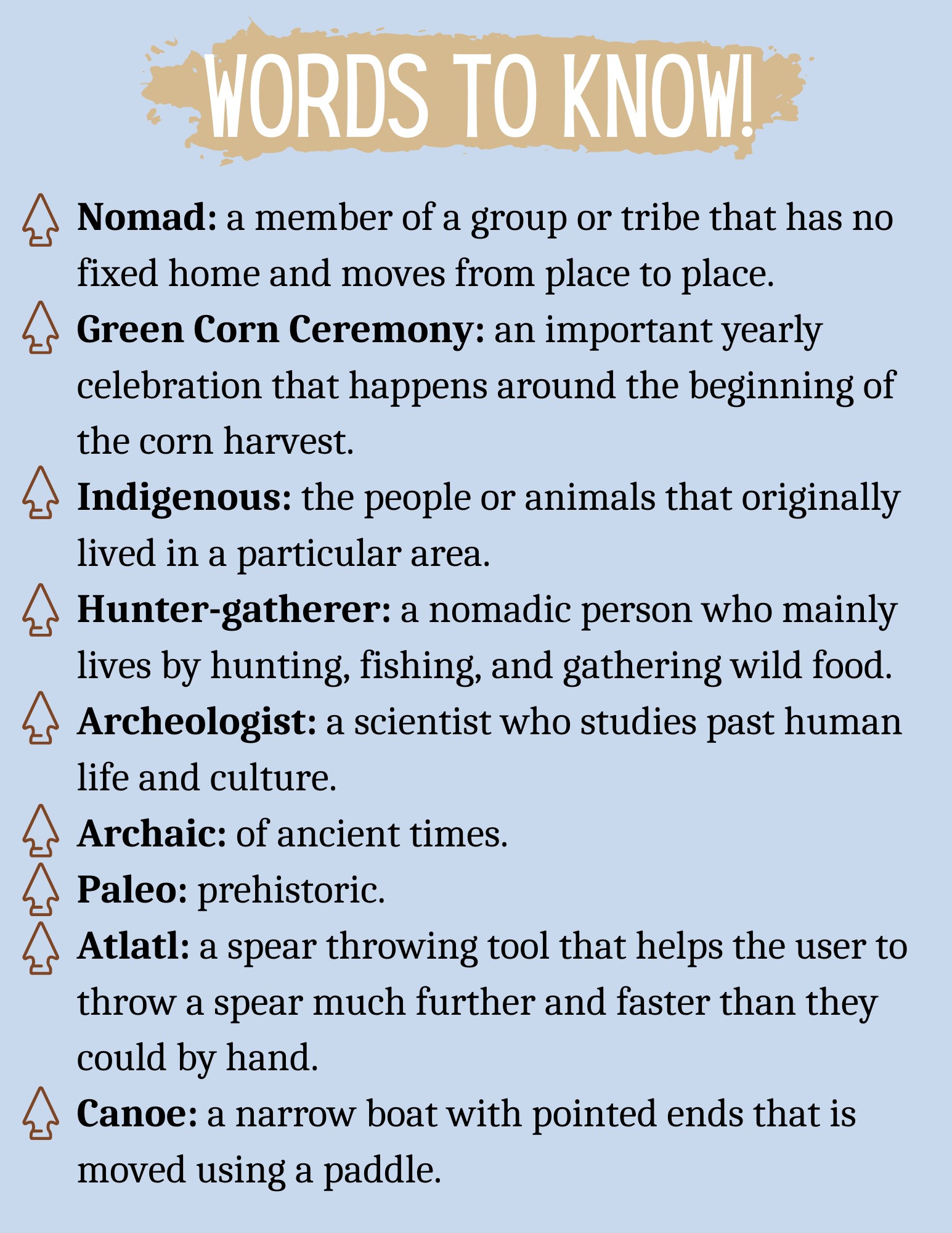 November's "History To-Go" box features Native Americans! You can come by the museum starting Tuesday November 1, 2022 to pick up a box (limit 2 per family). Limited supplies, so come early! You can select the links below to access the box contents if you cannot get to the museum to pick yours up!