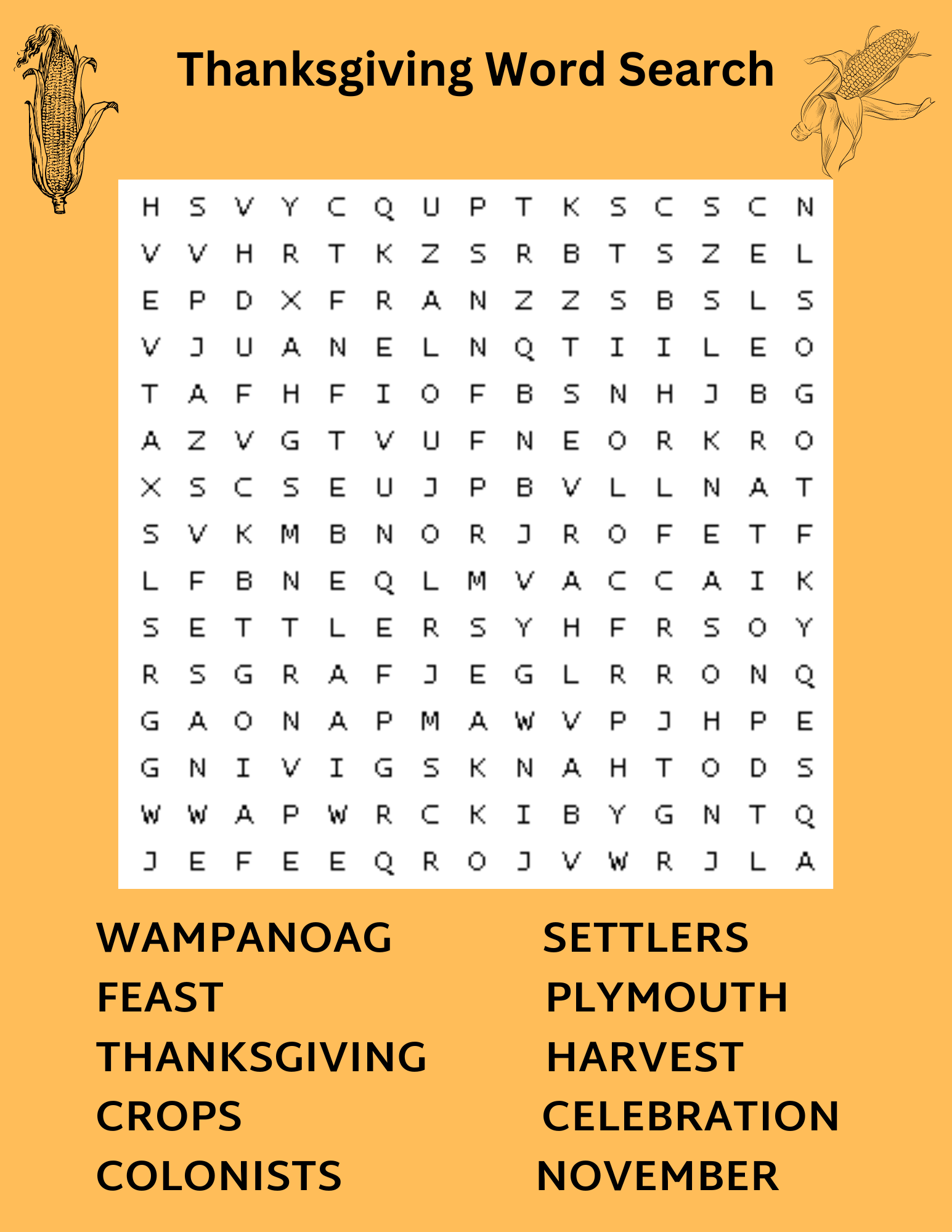 November's "History To-Go" box features Thanksgiving! You can come by the museum starting Tuesday, November 7, 2023 to pick up a box (limit 2 per family). Limited supplies, so come early! You can select the links below to access the box contents if you cannot get to the museum to pick yours up!